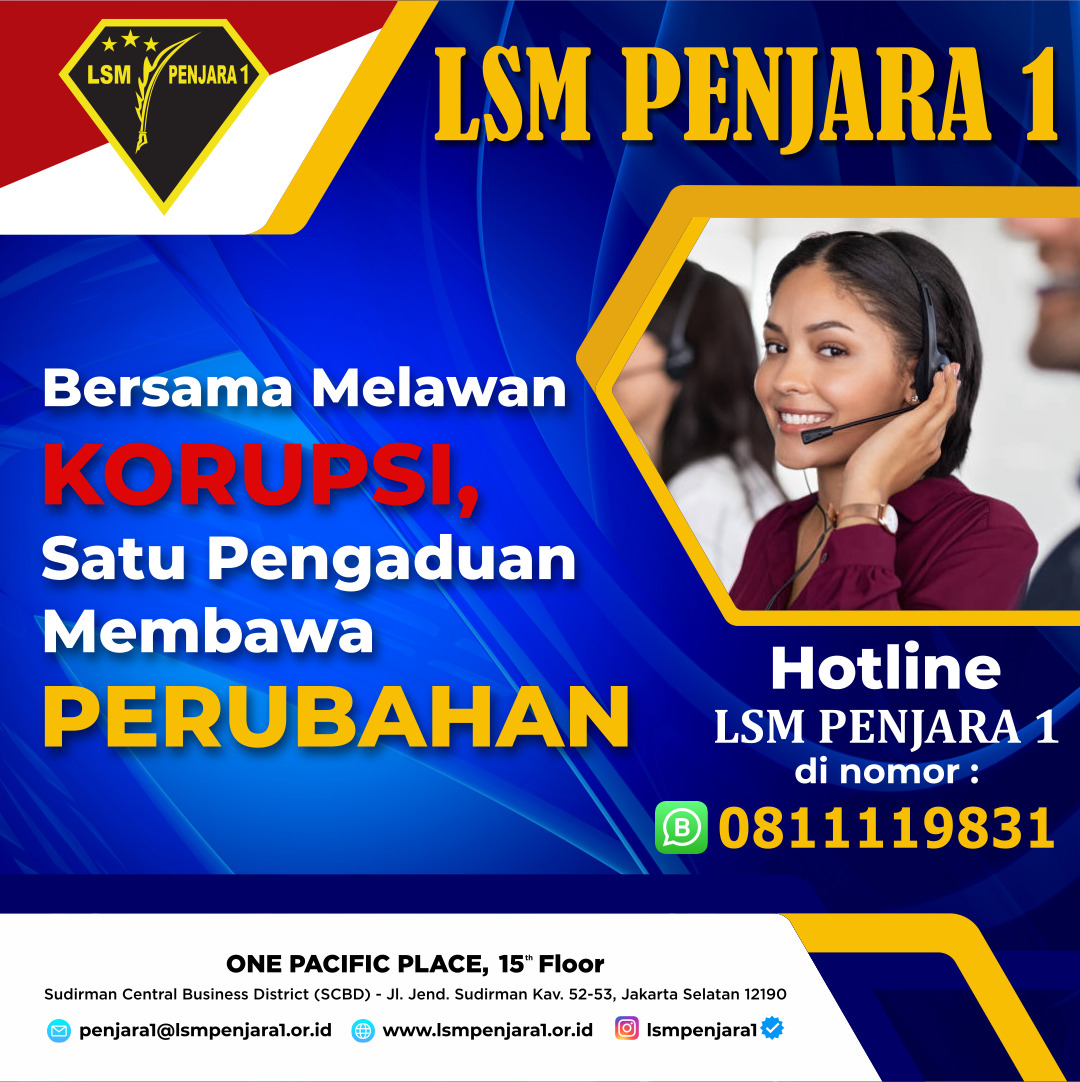 SCBD, Jakarta – LSM PENJARA 1, sebuah NGO yang konsentrasi penuh terhadap usaha pemberantasan tindak pidana korupsi, dengan ini menginformasikan peluncuran fasilitas Hotline terbaru. Fasilitas ini diresmikan sebagai salah satu mekanisme yang dimaksudkan untuk mempermudah warga/masyarakat dalam melapor dan mengungkapkan kejadian-kejadian yang terindikasi korupsi. Fasilitas Hotline ini tersedia dan dapat diakses melalui nomor WhatsApp: 0811119831. Dengan berlokasi di One Pacific Place, lantai 15, Sudirman Central Business District (SCBD) Jakarta Selatan, LSM PENJARA 1 menyatakan kesiapannya untuk menampung dan menindaklanjuti aduan-aduan masyarakat terkait praktek-praktek koruptif yang dilakukan oleh pejabat publik. Inisiatif ini dirancang sebagai bagian integral dari strategi pemberantasan korupsi yang progresif, sekaligus mengajak partisipasi aktif masyarakat dalam mengadvokasi perubahan yang substantif dan pemantapan integritas dalam sektor publik.